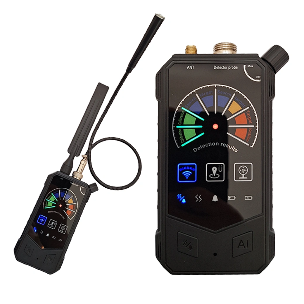 • מכשיר גלאי מקצועי לאיתור מצלמות נסתרות, מכשירי ציתות (באגים) ומעקב GPS.