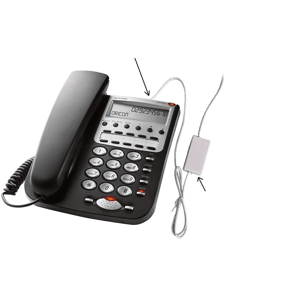 מכשיר הקלטה זעיר בתוך מתאם טלפון קווי לבית ולמשרד