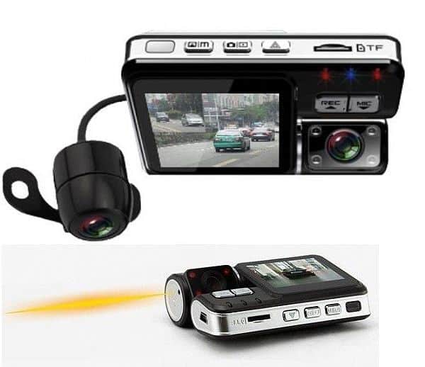- בעל 2 מצלמות המקליטות בו זמנית ייחד – המאפשרות תיעוד מלא של המתחרש מאחורי הרכב ומלפניו בו זמנית, צילום צדדי הרכב וכד’.