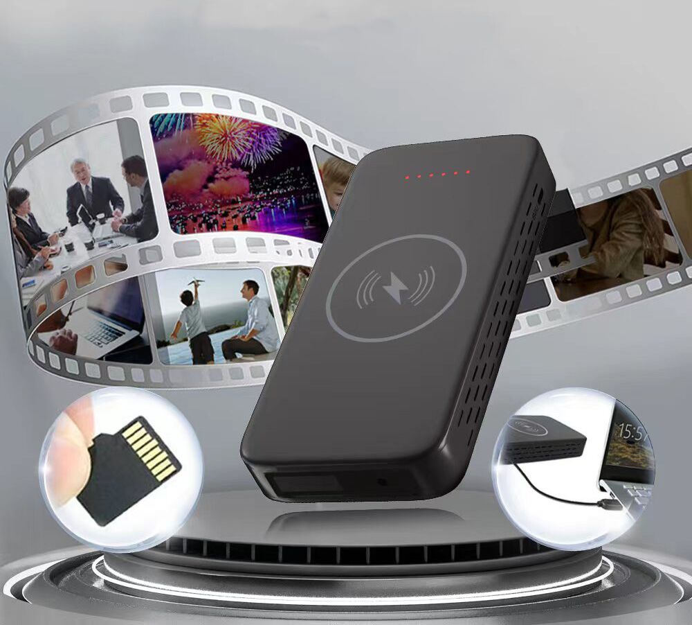 מצלמה נסתרת במטען נייד עם טעינה אלחוטית וחוטית