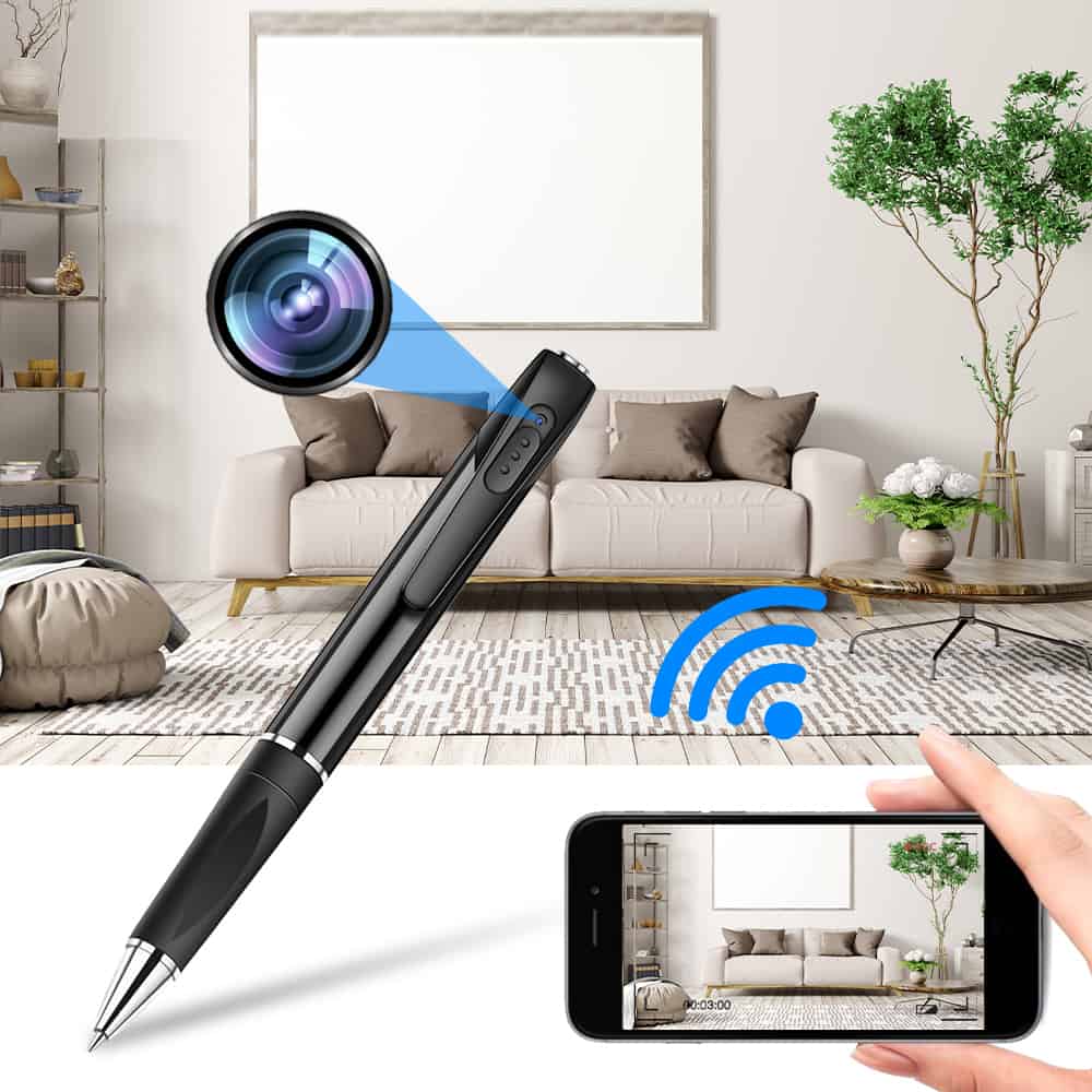 - מצלמה מוסלקת בתוך עט המשדר בשידור ישיר לסלולרי דרך רשת ה-WIFI
