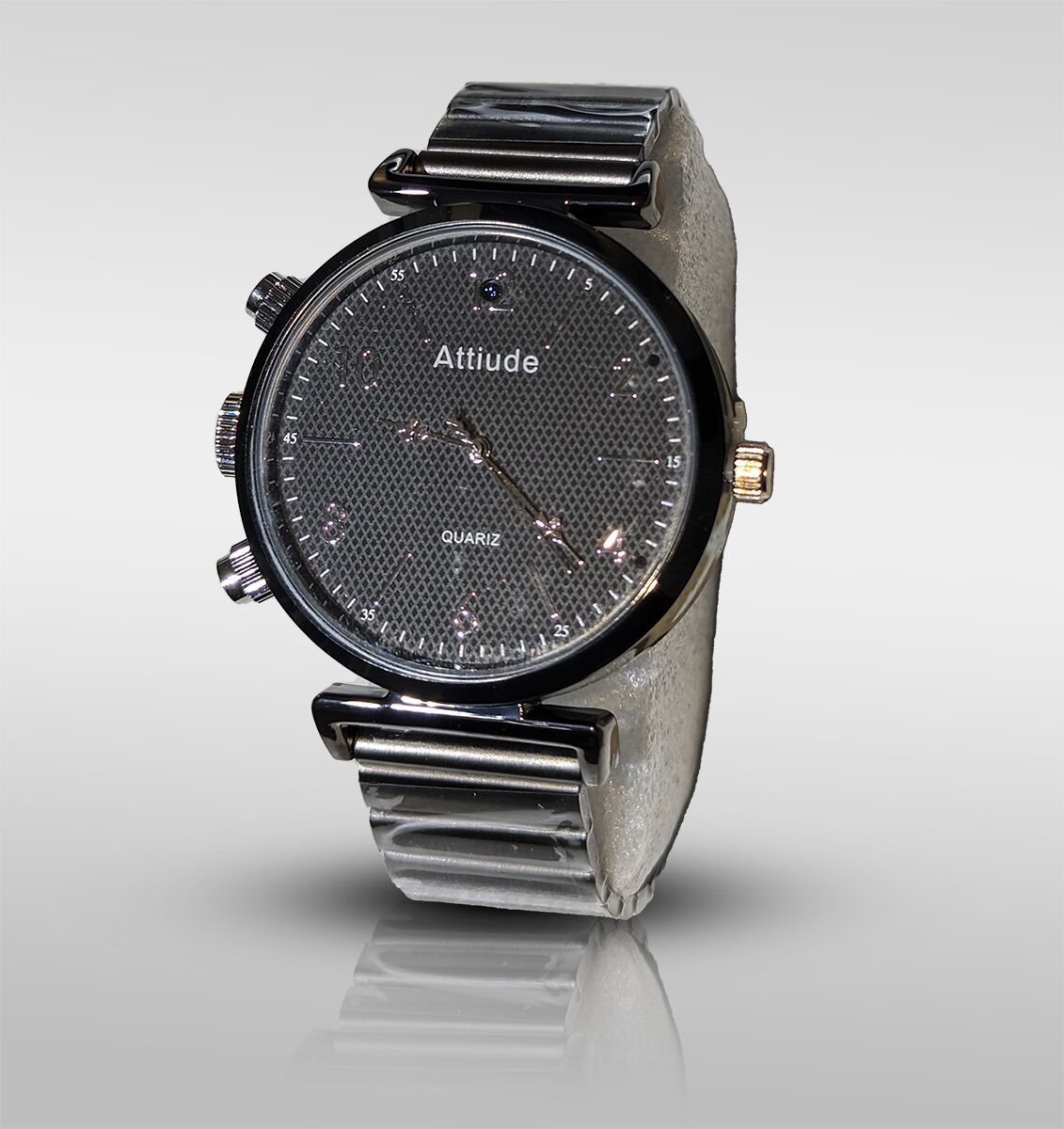 שעון אנלוגי כסוף עם מצלמה נסתרת